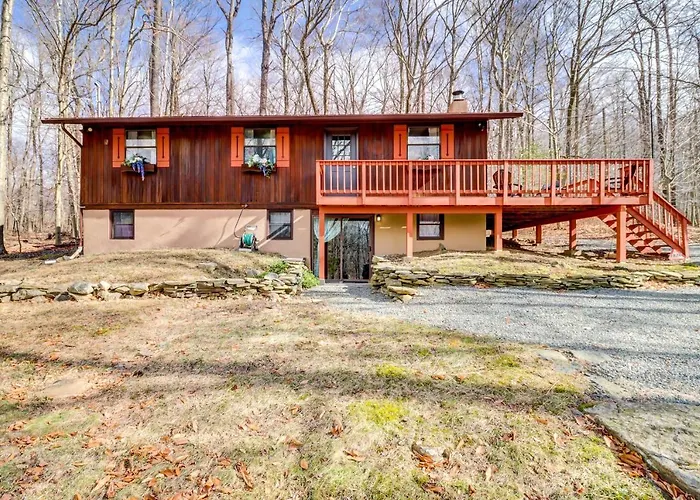 Welcome to the Pet-Friendly Gouldsboro Home At Big Bass Lake, a serene retreat nestled amidst nature's bounty, just 35 kilometers from the bustling Wilkes-Barre/Scranton International Airport. This charming residence seamlessly combines modern comforts with rustic charm, making it the perfect getaway for families and pet lovers alike. Experience the tranquility surrounding the big bass lake, ideal for both relaxation and recreation.